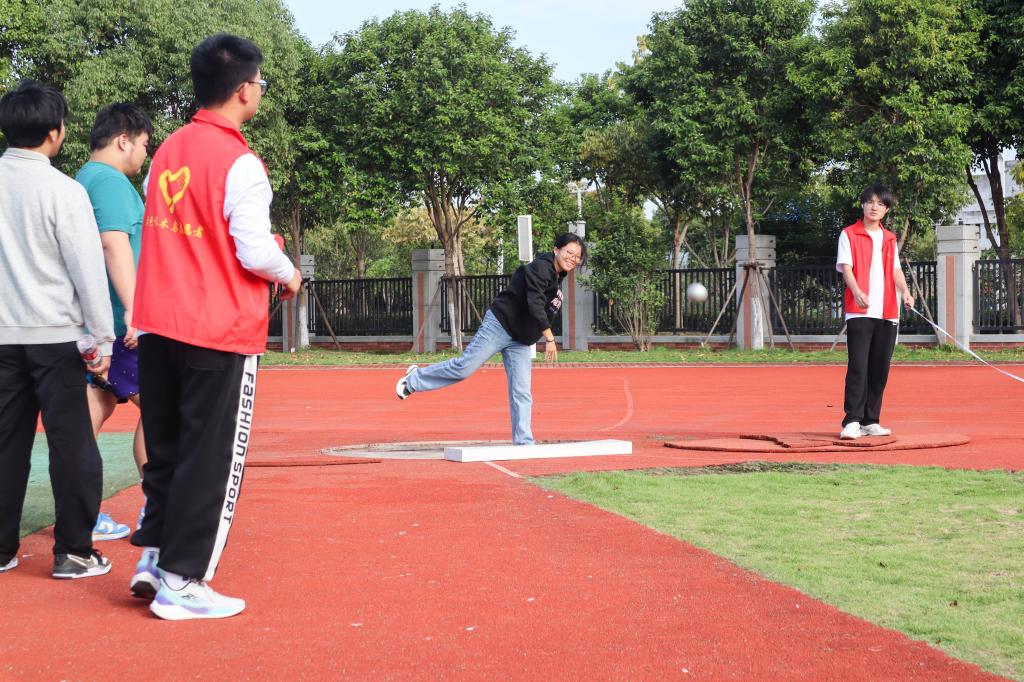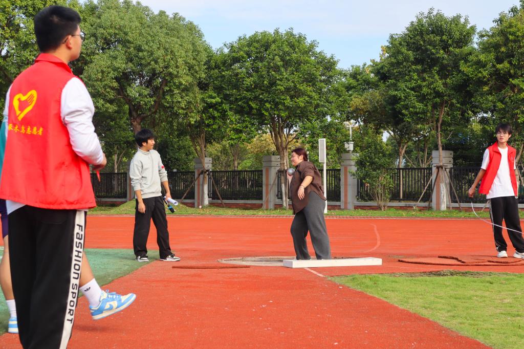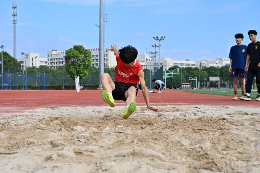 田赛场地同样精彩纷呈。跳远沙坑前,运动员屏息凝神,反复调整助跑节奏,力求每一步都精准到位;起跳、腾空、落地——动作一气呵成,宛如“光路校准”般严谨流畅。沙粒在空中飞溅的刹那,跃动的身影被阳光定格,青春的力量与美感在此刻完美交融,赢得阵阵喝彩。