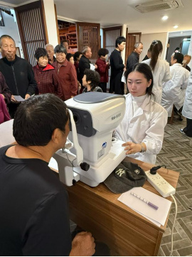 考虑到老年人可能存在白内障、青光眼、老花眼等高发问题,志愿服务队准备了视力检测、电脑验光、裂隙灯检查白内障等项目,针对老年人不会讲普通话的问题,专门招募会讲温州话的同学配备到服务队中,保障检测沟通的流畅。活动开始前专门对志愿者进行老年人沟通技巧、检查流程规范及应急处理等内容培训。