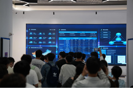 参观环节中,学院师生走进吴霞科技的研发中心与智能交通展示区。展厅负责人为同学们详细讲解了公司在智能交通、数据融合、AI算法等领域的创新成果,并通过多个成功案例,生动展示了技术的实际应用,尤其是车载终端、智能监控系统和数据分析平台,令同学们对未来智能交通的发展充满了期待。