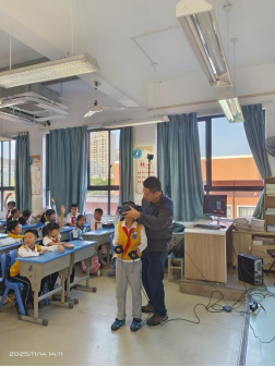为充分发挥高校专业资源优势,推动前沿科技知识普及,助力青少年科学素养提升,11 月 15 日,人工智能学院大数据技术专业杨林、周杰两位教师走进温州市上陡门小学,以 “沉浸式科技体验” 为核心,开展了一场别开生面的人工智能科普活动,通过机械狗互动、VR 眼镜体验等趣味形式,为小学生们打开了一扇通往科技世界的大门。