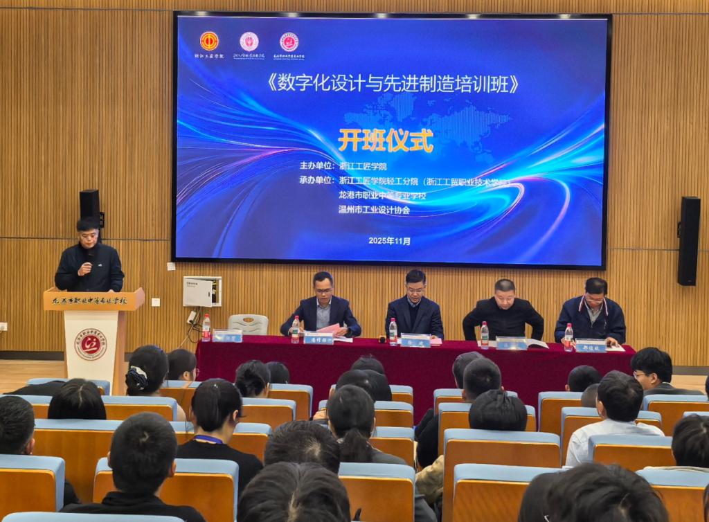 11月13日-16日,由浙江工匠学院主办,浙江工匠学院轻工分院(浙江工贸职业技术学院)承办的“2025年数字化设计与先进制造培训班”,在浙江工贸职业技术学院龙港智能包装印刷装备产业学院顺利开班。浙江省总工会干部学校(浙江工匠学院)党委委员、副校长徐斌,党委委员、职业技能培训部主任郑俊斌,我校设计与数字艺术学院党总支书记潘修强以及来自全省20多家企业的45名智能制造领域工程师和设计师参加了开班仪式。开班仪式由我校设计与数字艺术学院副院长易际磐主持。
