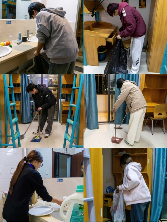 人工智能学院辅导员蔡万盛老师组织带领下,由人工智能学院党务部和自律委员会学生组成的先锋队,深入男女生宿舍,开展了一次全面的清扫实践,真正让公寓空间成为生动的“思政劳动实践课堂”。