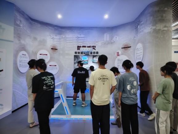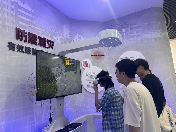 在防震减灾板块,VR地震模拟体验项目用虚拟现实技术打造沉浸式安全教育课堂,高度还原了地震发生时的各种险情,包括家具倾倒、道路受阻、电路故障等次生灾害,让学生在绝对安全的环境中,学习如何识别风险、科学避险和有效逃生,彻底打破传统教学模式的局限,让学生身临其境,从“纸上谈兵”到“感同身受”。“太真实了,虽然知道是模拟,但心脏还是跳的厉害。”学生李俊心有余悸地说。