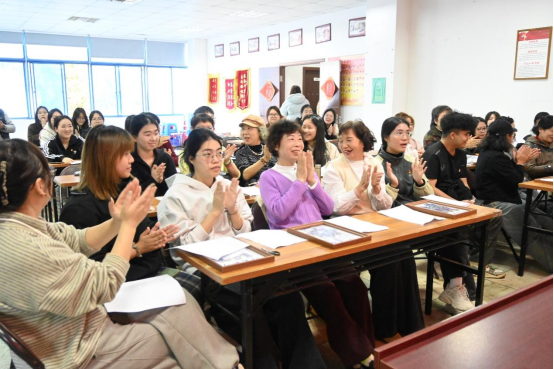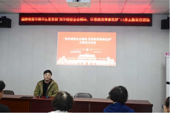 为深入学习贯彻党的二十届四中全会精神,推动理论学习与实践服务深度融合,充分发挥党员先锋模范作用,2025年11月24日下午,浙江工贸职业技术学院国际商贸学院学生党支部与滨江街道宏源社区第一党支部在宏源社区二楼活动室联合开展“深学细悟全会精神,学思践悟青春筑梦”主题党日活动。国际商贸学院学生党支部全体党员、宏源社区党员及15位老年居民代表齐聚一堂,以理论宣讲、故事分享、手工共创、红歌传唱等形式,让党建活力扎根基层、温暖民心。
