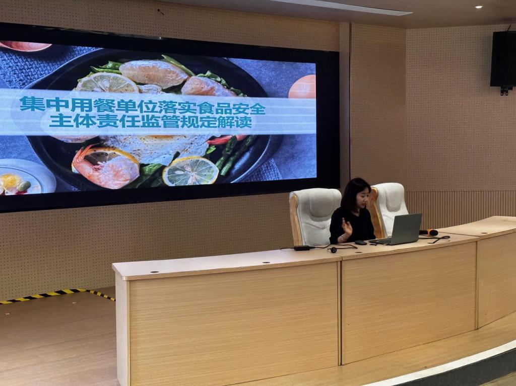为了深入贯彻市场监管总局发布的《集中用餐单位落实食品安全主体责任监督管理规定》,确保广大师生的饮食健康,后勤保障处于4月11日在府东路校区阶梯教室成功举办了主题为《筑牢校园“食”防线——高校食品安全全链条管理能力提升行动》的培训活动。胡必芳老师负责此次培训,旨在通过理论与实践相结合的方式,全面提升校园餐饮服务人员的专业能力,强化校园食品安全的全方位管理。