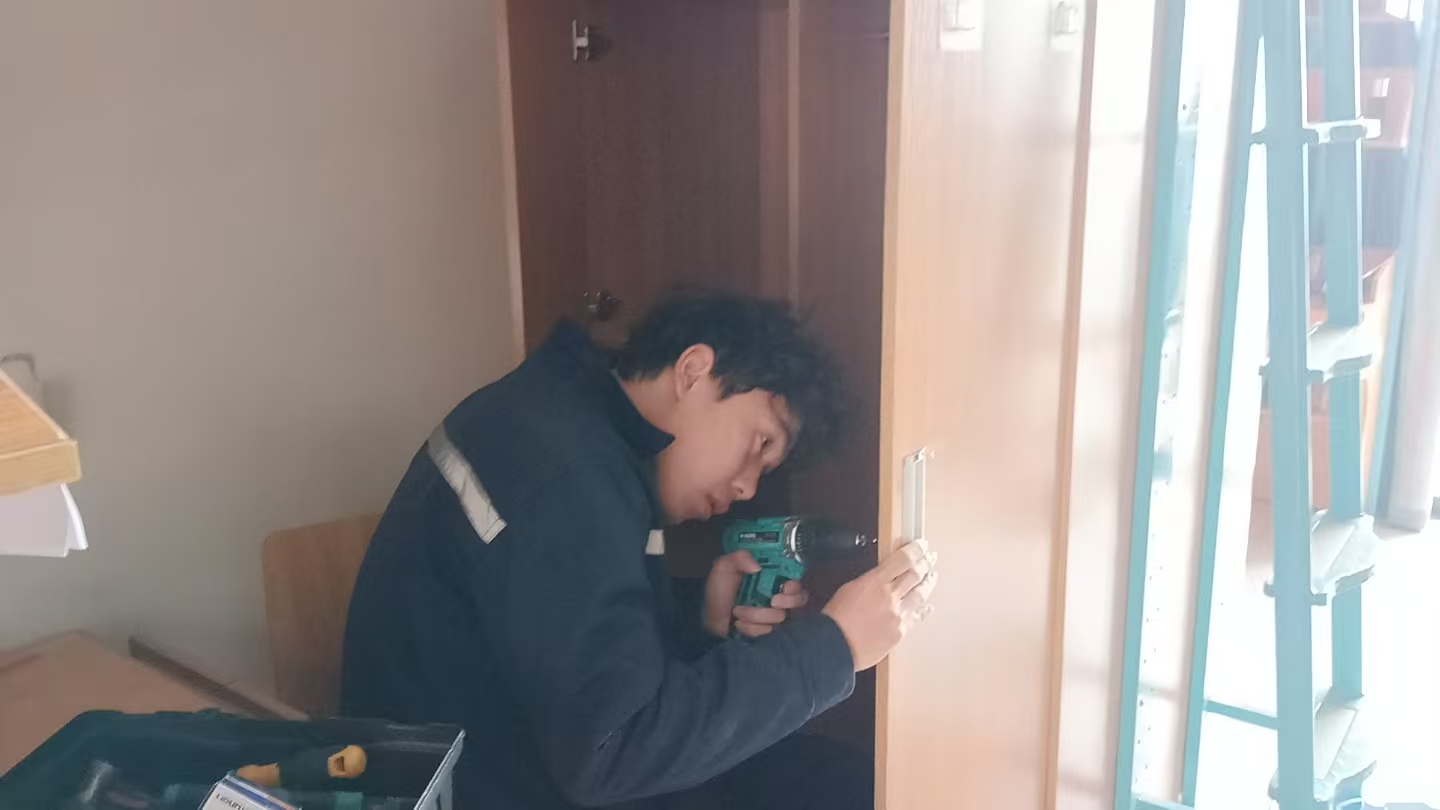 物业负责人带队对1300余间宿舍进行安全排查,维修门窗锁具70来处。检查消防设施设备332套。开展"除旧迎新"大扫除,对公共浴室、洗衣房、走廊、大厅等区域全面消杀。两校区持续做好"微服务"举措,在每栋公寓楼设置24小时值班岗,配备应急药箱、针线包等便民物资,让学子感受"回家"的温暖。
