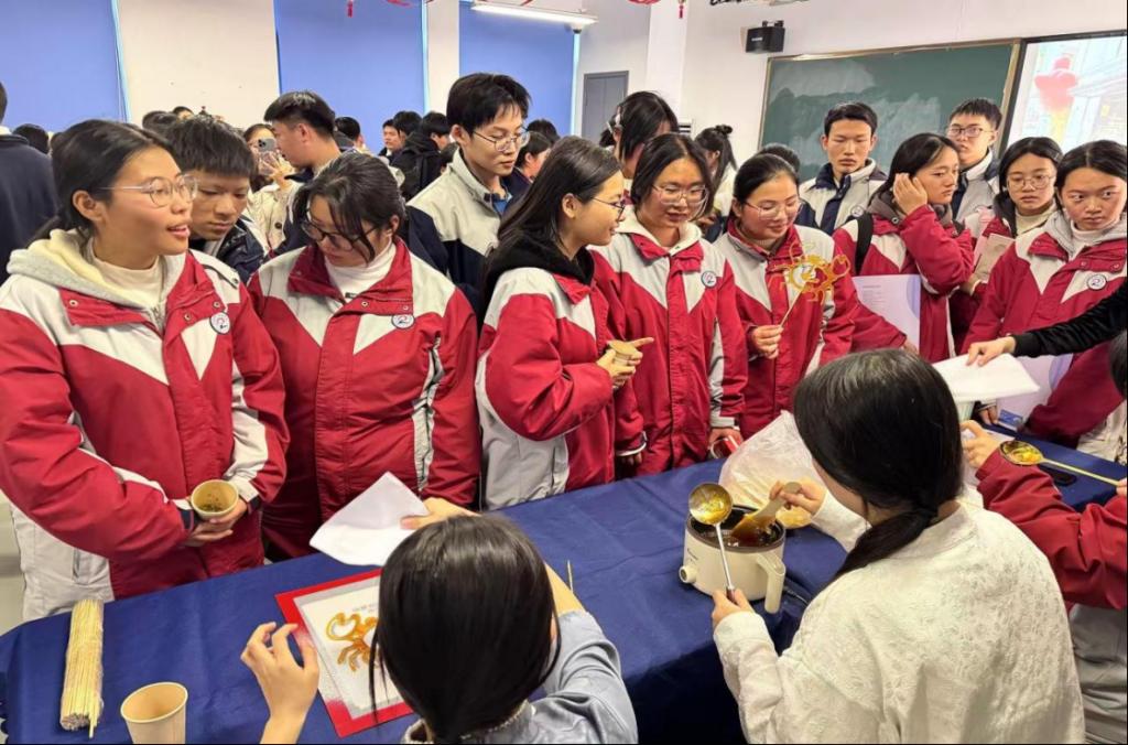 糖画制作区堪称全场“人气焦点”,学子将传统糖画技艺与现代旅游体验结合,现场熬糖、绘图案。龙、凤、兔子及温州地标建筑造型的糖画,冷却后裹上竹签递予参观者,甜香与欢呼声交织,不少同学排队定制专属糖画,尽显传统技艺与旅游体验结合的独特魅力。