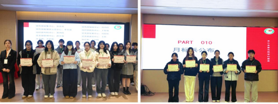 在备受关注的月标兵与先进个人竞选环节,竞选者们围绕部门工作实绩、志愿活动经历、个人能力提升及未来工作规划等内容展开精彩展示,充分展现了团学干部的责任与担当。经过严格评审,王妍苏、陈好、陈梦梅等6名干事荣获“月标兵”称号;蔡丹丹、盛佩鹃、王紫璇等18位干事被评为“月先进”。