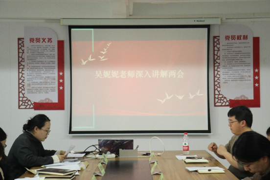 随后,吴妮妮结合两会专题视频,系统解读两会精神与青年发展相关部署,围绕读书、就业、成长、未来四个维度提出要求:勉励大家夯实专业根基,在数字贸易、跨境电商等领域练就过硬本领;保持积极心态,兼具敢闯敢试的锐气与扎根基层的韧性,在时代变革中坚守定力;主动走出校园,在实践历练中深刻理解高质量发展的内涵要义。