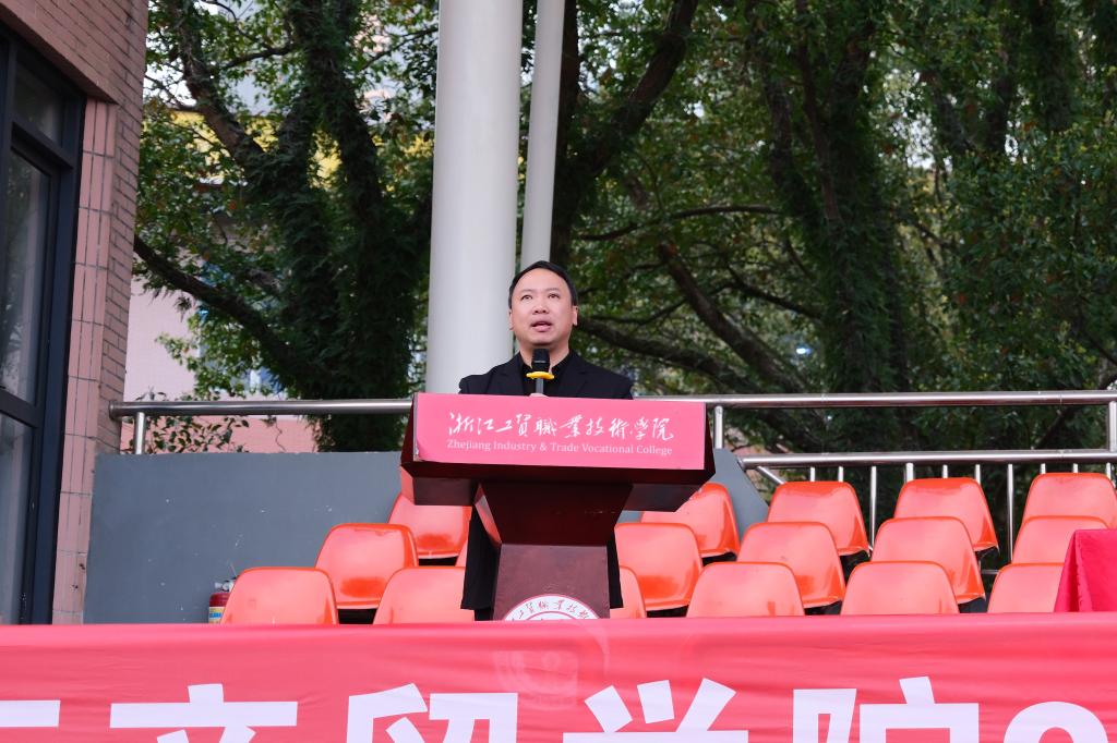 随后,国际商贸学院院长陈碎雷致辞。陈院长结合国际商贸学院的办学定位、专业特色和人才培养目标,全面分析了新学期学院的发展目标和人才培养重点,对新学期同学们的学习、实践、成长提出了四点明确要求与殷切期望。一是严守课堂规矩,筑牢知识根基。二是践行专业实践,锤炼职业素养。三是保持进取之心,主动对标提升。四是坚持运动锻炼,涵养强健体魄。他鼓励同学们追求梦想、脚踏实地,主动对标行业前沿、对标优秀学长、对标企业岗位要求,积极参与专业职业技能竞赛、挑战杯、职业生涯规划等创新创业竞赛和专业实践创新活动,不断提升综合职业能力和职业素养,在学习中锤炼本领,在实践中增长才干,在运动中强健体魄,努力成为一名有理想、有本领、有担当、有活力的高技能商贸人才。