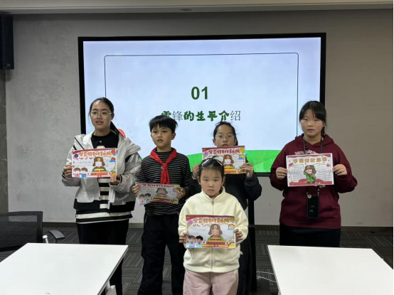 课堂上,志愿者们化身“雷锋精神宣讲员”,通过播放雷锋事迹影像、讲述雷锋生平故事、展示优秀手抄报范例等形式,为孩子们带来了一场生动鲜活的精神洗礼。志愿者们用通俗易懂的语言,深入浅出地讲解了雷锋爱岗敬业、助人为乐、无私奉献的高尚品格,引导孩子们在直观的视听体验中感悟榜样力量,让“向雷锋同志学习”的理念真正走进青少年心中。