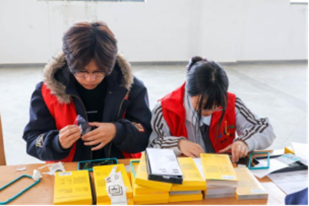 此外,活动还设置了好人好事分享环节。同学们在专属KT板上书写自己亲历或目睹的好人好事,分享日常中的善意与温暖,传递互帮互助的良好风尚。完成分享后,参与者可领取创口贴、消毒棉片等医用小物品,将暖心关怀落到细微之处。
