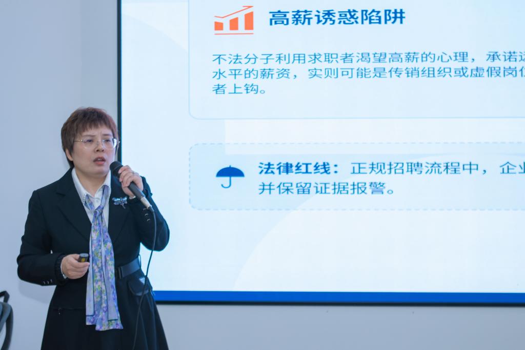 讲座中,周律师结合多年执业积累的真实案例,围绕求职避坑、试用期规范、劳动合同签订、加班权益保障、维权途径等核心内容展开系统讲解。周律师重点警示了替人担任非自身掌控公司法定代表人的法律风险,明确解读了试用期期限、工资下限、社保从入职当日缴纳等法定要求,强调签订劳动合同时需坚决拒绝空白合同、仔细核对签约主体、妥善保留合同原件,同时也讲解了加班工资核算标准、劳动合同与劳务合同的核心区别,以及寒暑假工劳务维权的注意事项。