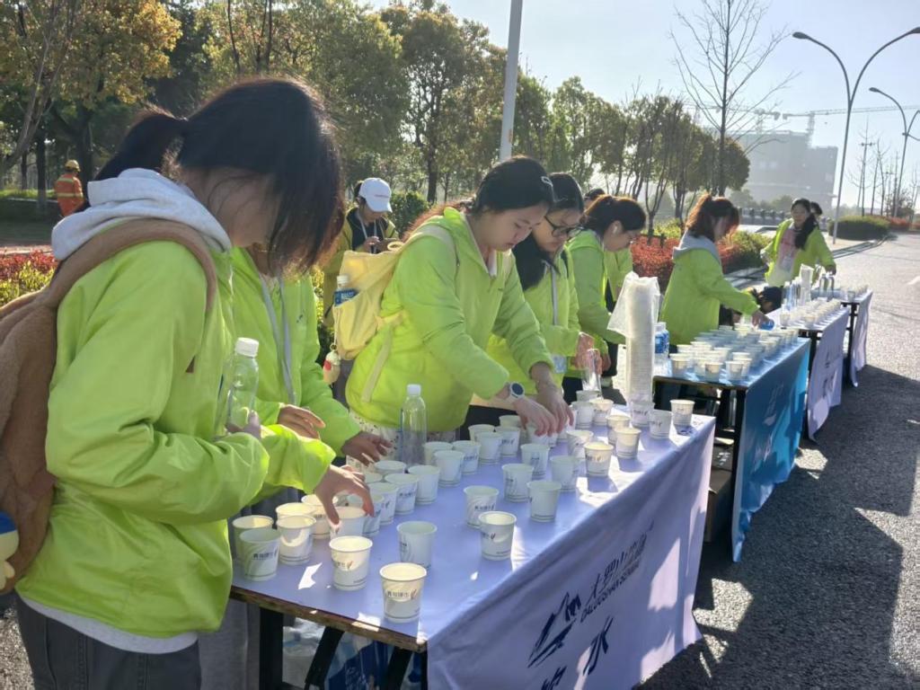 物资存取组志愿者认真核对选手寄存信息,妥善保管各类个人物品,让选手能够轻装上阵、安心参赛;补给站志愿者坚守赛道中途,及时为选手递上饮用水和能量补给,为奔跑中的选手补充体力;完赛物资发放组志愿者则驻守赛事终点,赛前提前分类清点完赛物资,规划好领取动线。选手冲线后,志愿者们快速核对参赛信息,为每一位完赛选手递上物资礼包,送上暖心祝贺,用贴心服务为选手的赛程画上圆满句号。