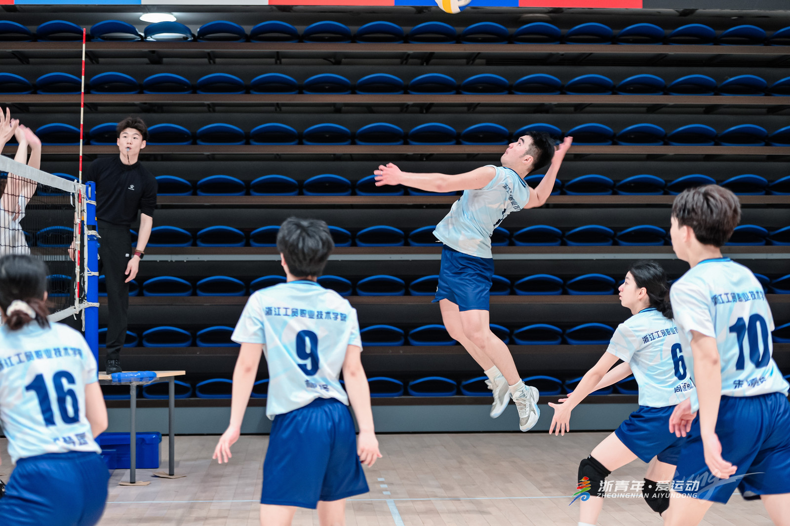 大赛当天全省64所高校,850余名学子报名参赛。比赛中,各高校代表队意气风发、奋勇争先,队员们默契配合、全力拼搏,在一次次起跳、拦网与扣杀中挥洒青春汗水,锤炼意志品格,尽享运动乐趣,充分展现了新时代青年昂扬向上、团结协作的体育精神与青春风貌。