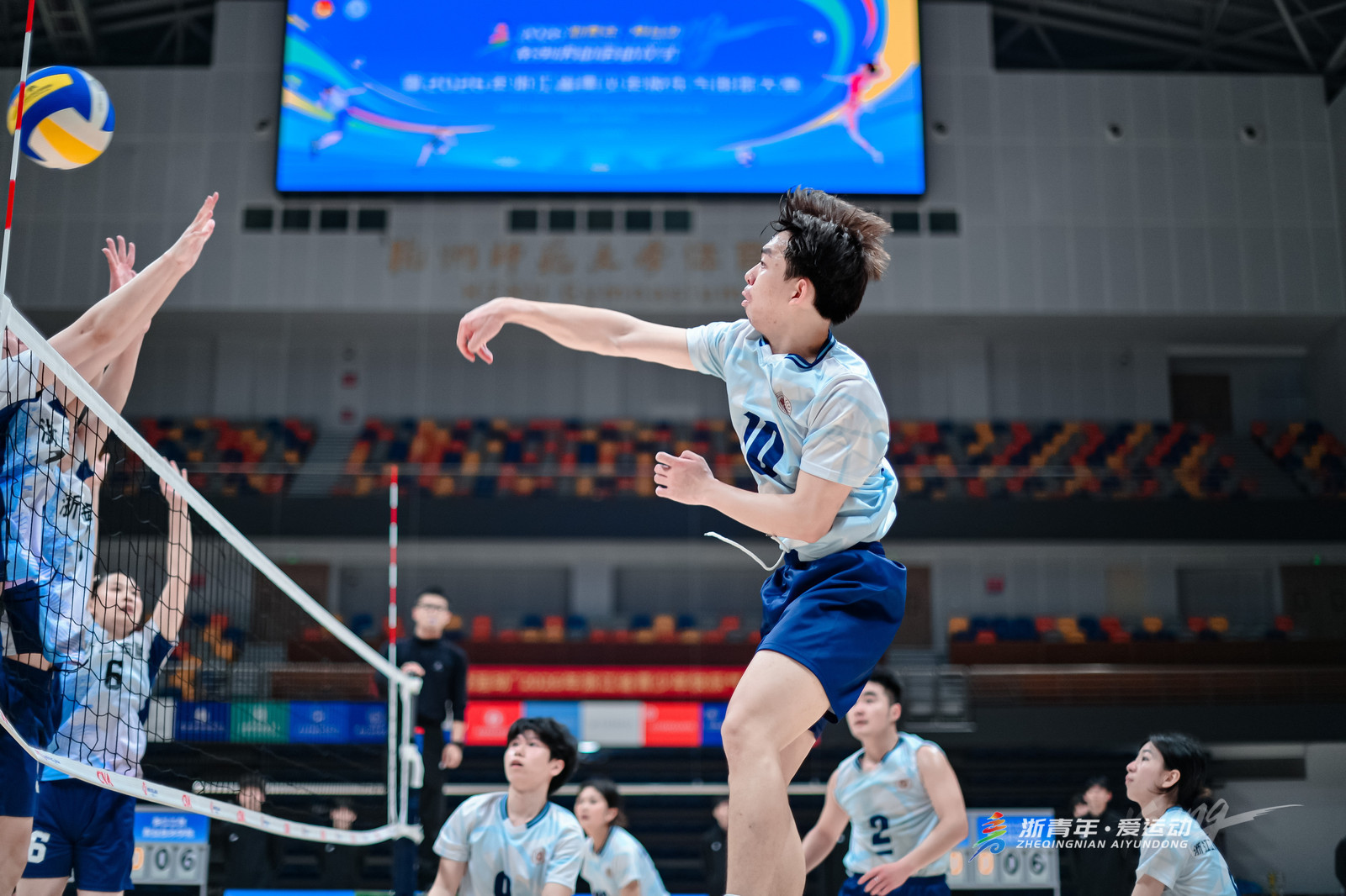 4月11日,由共青团浙江省委、浙江省体育局、浙江省学生联合会、浙江省少工委联合主办的2026年度 “浙青年・爱运动” 青少年快乐气排球大赛在杭州师范大学仓