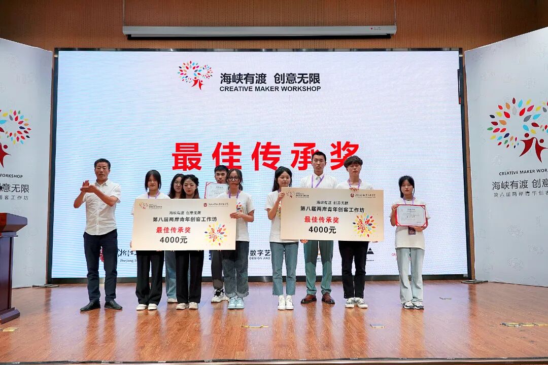 第八届两岸青年创客工作坊评审组组长,温州大学美术与设计学院副院长胡文超为10个团队的作品进行点评,肯定了每组团队作品中的亮点、创新点,同时也提出了一些改进的建议。经过认真评审,专家团最后评选出了最佳创客奖、最佳创新奖、最佳创意奖、最佳传承奖、最佳潜质奖5项奖项。由浙江工贸职业技术学院学生与三名台湾学生组队创作的作品《Module智能眼镜》获得最佳创客奖,《“犭”立方》和《Relax小瑞》获得最佳创新奖,《智能坐浴盆》和《营养师Nutritionist》获得最佳创意奖,《瓯纹》和《“新”车熟路·卡尔-超市智能购物车人性化设计》获得最佳传承奖,而《福兔贺春》《库遗巷》《夹缬新韵》3个作品获最佳潜质奖。