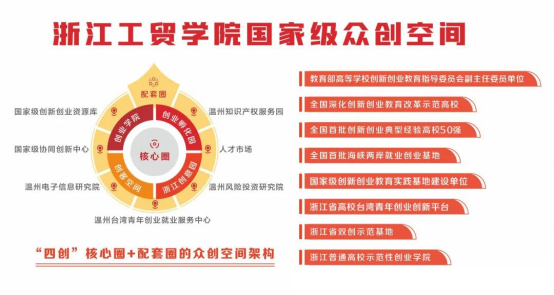 近年来,浙工贸立足于创新创业人才培养,确立了“资源共享、平台共建、成果共用、人才共育”四共理念,以创新创业教育实践基地中的国家级众创空间为核心,政校行企共建“学校+园区+城市”融合体,形成了“一核两翼三载体”双创教育实践平台,打造了“研训创融通”协同育人模式。
