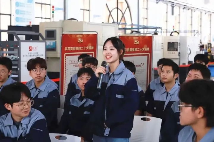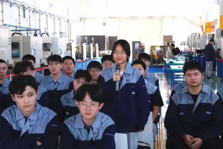 连日来,在宽敞明亮的智能制造实训场地,在实训课上课之前或者实训课结束,老师和同学利用20分钟围坐一起,集体学习党的二十大精神,重点围绕“科教兴国”战略分享畅谈作为一名职业院校教师和大学生的心得体会。