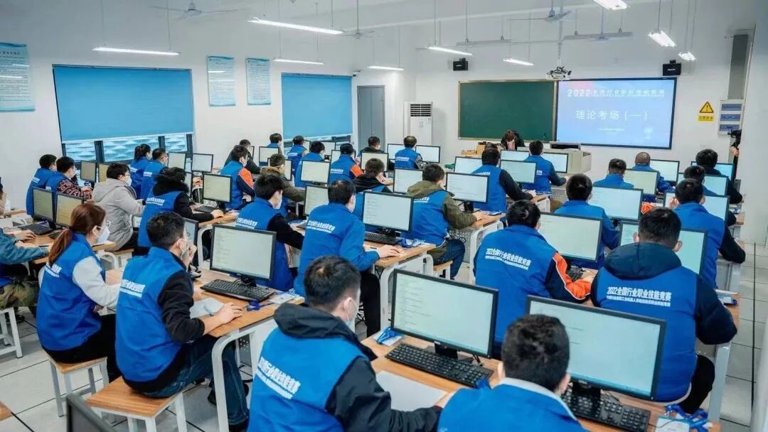 1月14日下午培训会后,全体参赛选手进行理论知识考试。考试结果同步显示,实现了自动化、智能化人机并举新模式。