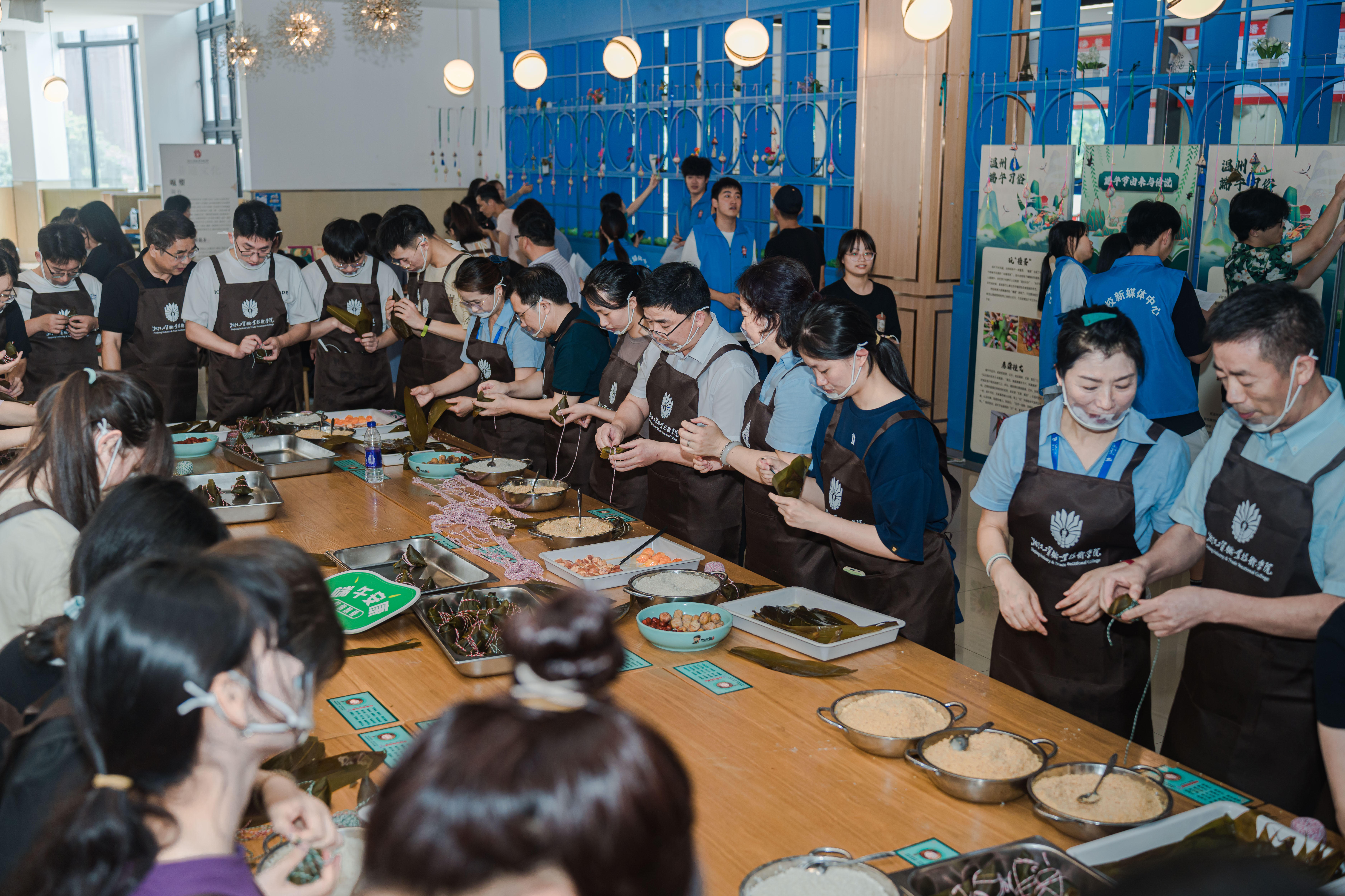 取粽叶、塞馅料、捆粽子••••••大家围在学校食堂提前准备好的食材前跃跃欲试,一场别开生面的包粽子活动至此拉开了帷幕。不少同学都表示从来没有包过粽子,纷纷拿着粽叶向食堂阿姨请教,一步一步地跟着学习。不一会儿工夫,一只只漂亮的粽子成型了。“好幸福,在学校过节仪式感满满!”在端午佳节,学校为两个校区在校师生发放粽子、咸鸭蛋5000多份,让大家在学校“粽”享美好时光。