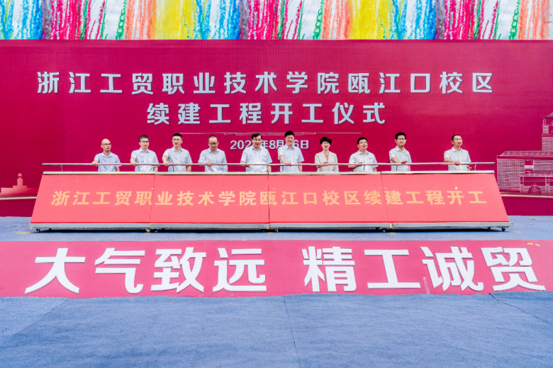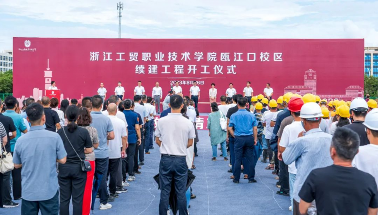 温都讯 8月26日上午,省级公共服务“七优享”重大项目浙江工贸职业技术学院瓯江口校区续建工程开工仪式举行。该项目建设的正式开工是学校高质量发展史上具有里程碑意义的时刻。