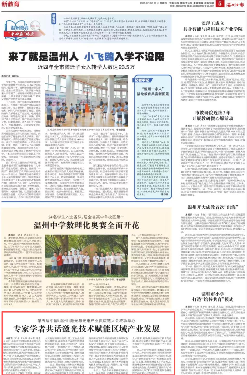 温州日报:专家学者共话激光技术赋能区域产业发展