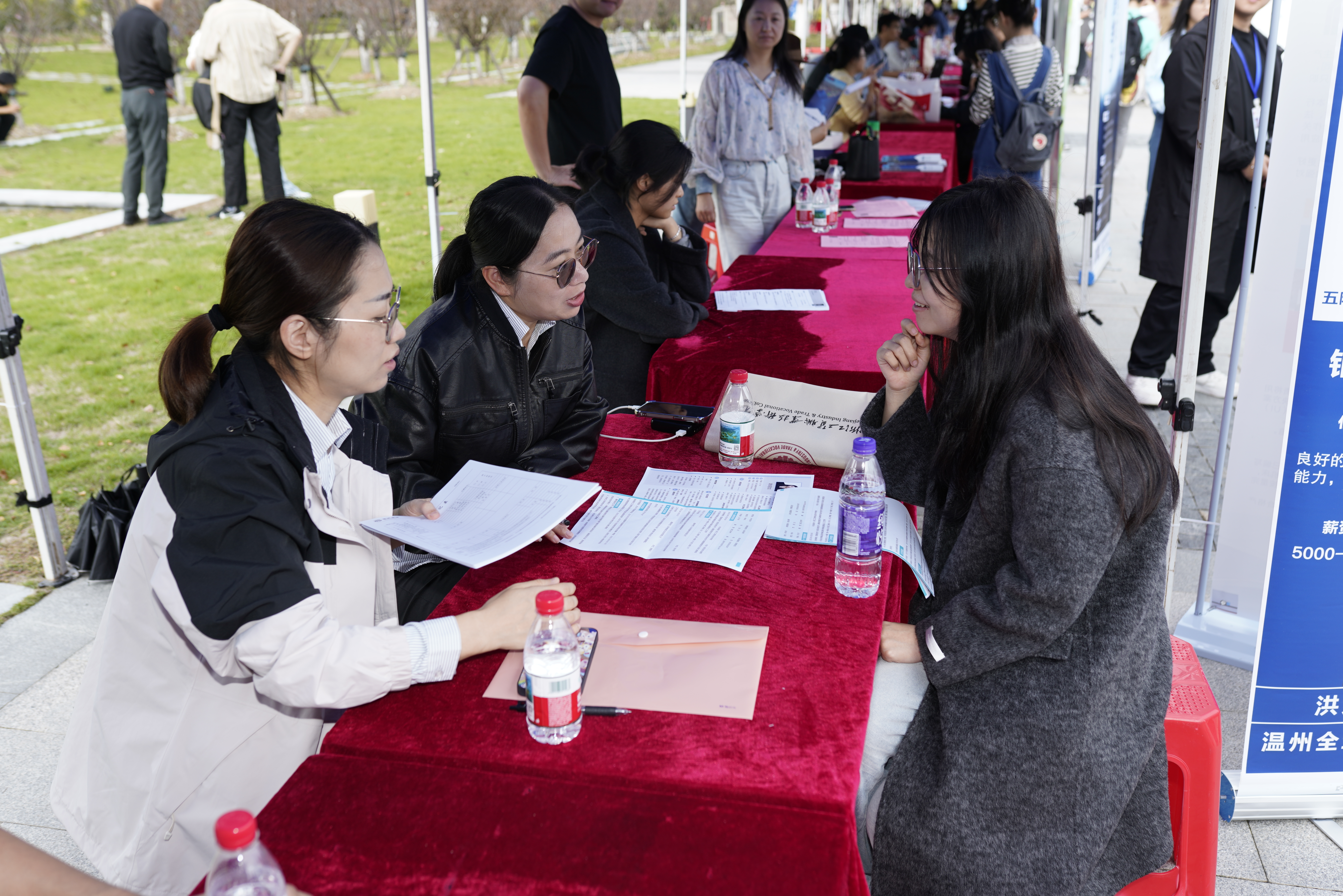 活动现场人头攒动。德力西电气、瑞立集团、麦田能源等温州本土企业展位前排起了长队。浙工贸自动化专业大三学生罗嘉成在麦田能源摊位主动了解了企业的晋升渠道。“我们这个专业毕业以后主要去制造企业维修技术岗位,工作还是比较好找的。”他告诉记者,相比较薪资,他更关注以后的成长,“总不能一直做普工,我希望通过努力成为有话语权的技术骨干。”麦田能源人事部工作人员章友乐介绍,此次招聘会人气十足,进场不到10分钟就收到了5份简历,“他们对企业的关注点都不一样,有偏向薪资、食堂住宿等福利待遇的,还有看重后期发展的。”