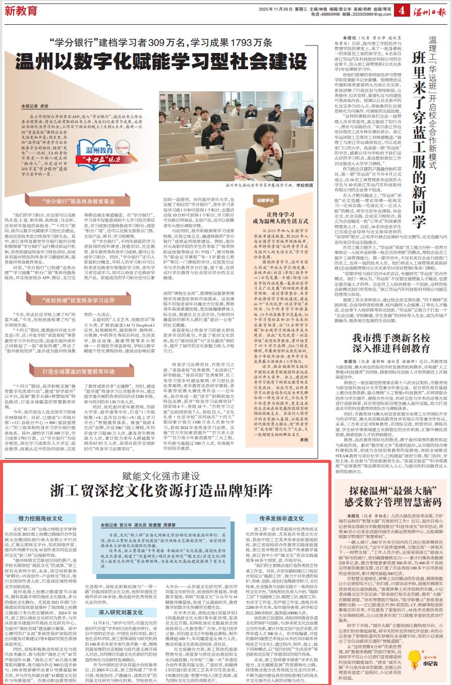 温州日报:赋能文化强市建设浙工贸深挖文化资源打造品牌矩阵