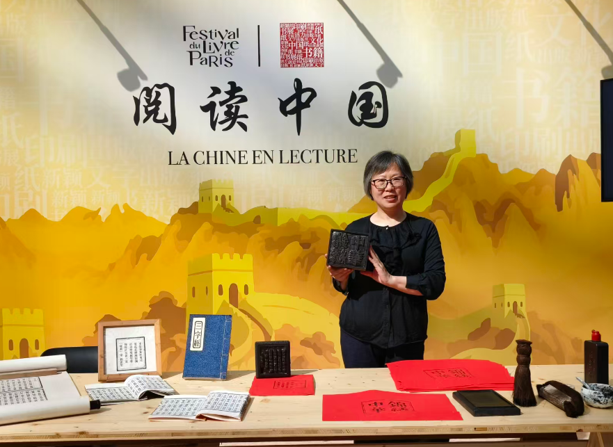 亮相巴黎图书文化节是入选后的成果展示。本届文化节以“文化的桥梁”为主题,汇聚全球100多个国家和地区的千余家机构与代表,法国总统马克龙出席开幕式。在“典籍里的中国”展区,浙工贸木活字印刷工作室负责人王春红老师应邀现场展示非遗技艺与教学成果。一块采用传统技艺精心雕刻的“锦绣中华”印版,成为众多外国友人争相体验的焦点,让世界亲身感受到中国古代四大发明之一——印刷术的独特魅力。