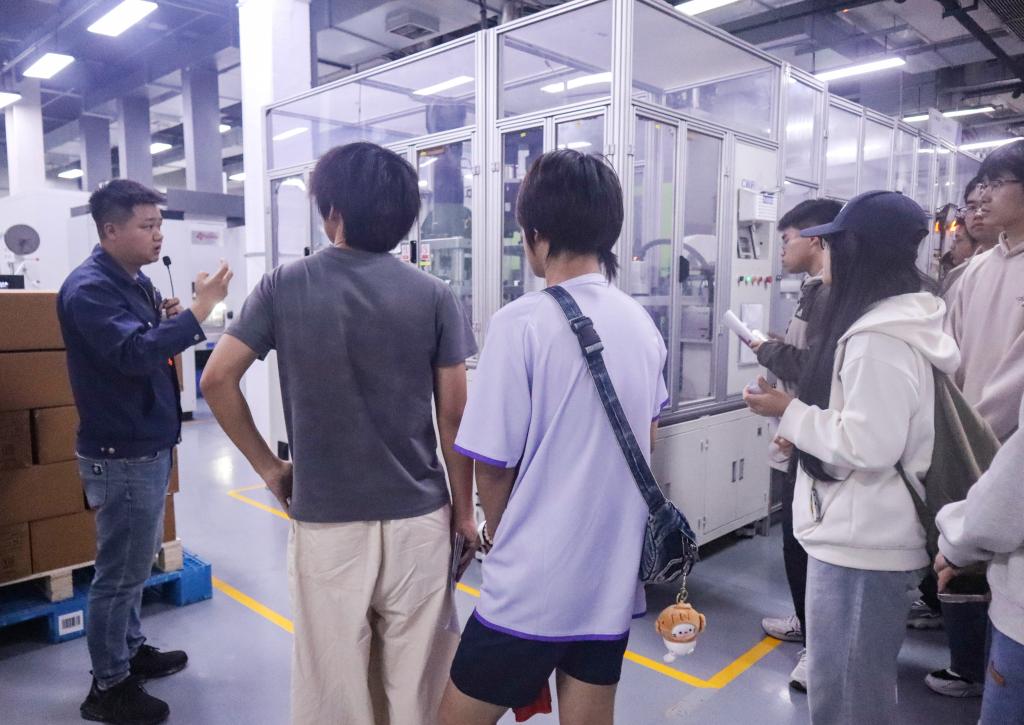 在“大明电子”的互动交流环节,该公司全国五一劳动奖章获得者吴步存,HR谢凤銮经理现场解读岗位需求、薪酬福利及晋升路径,学生们主动发言提问,围绕“结构设计助理工程师需要掌握哪些技能”“公司面试中更看重哪些技能”等问题与大明电子企业负责人面对面交流,并踊跃投递简历。“以前投简历都是‘盲投’,今天走进车间,才知道生产加工流水线长什么样,也明白了技术员岗位到底要做什么。”