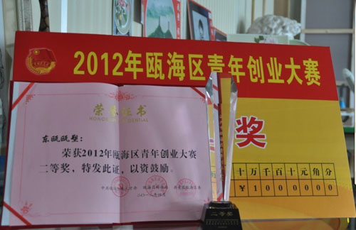 东瓯瓯塑工作室用传统工艺美术与现代文化创意相结合,以市场为导向,开发瓯塑礼品、旅游纪念品、动漫瓯塑等瓯塑创意品、并且逐步实行产业化道路。赛场赢得领导专家评委的一致好评,获得大赛第二名的好成绩,并且推荐入驻温州市大学科技园。
