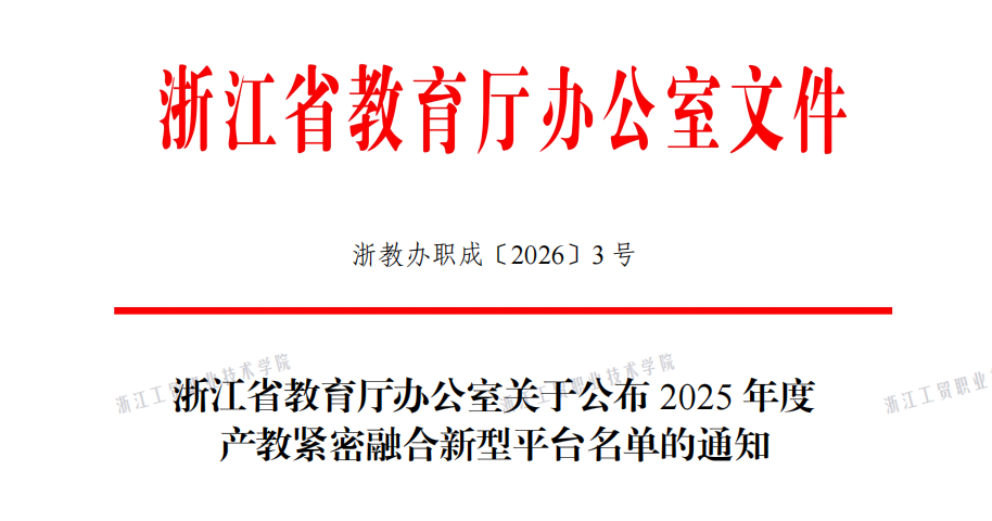 近日,浙江省教育厅办公室发布了《关于公布2025年度产教紧密融合新型平台名单的通知》(浙教办职成〔2026〕3号),学校牵头申报的眼健康行业产教融合共同体入选行业产教融合共同体新增入库培育建设名单,龙港智能印刷包装装备产业学院入选入选县域产业学院立项建设名单,标志着学校在深化产教融合、服务区域产业方面取得新的重要突破。