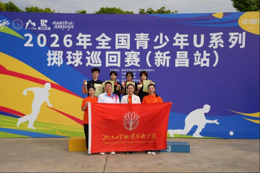 在刚刚结束的2026年全国掷球冠军赛和2026年全国青少年U系列掷球巡回赛(新昌站)中,我校地掷球代表队顽强拼搏,最终斩获6枚金牌、1枚银牌。获奖队员分别为:现代管理学院学生陈梦纹,以及技师学院学生刘琬婷、潘蕾、蔡桁。更令人振奋的是,四名队员全部入选国家青年后备人才库,并成功获得国家队选拔赛的入场券。