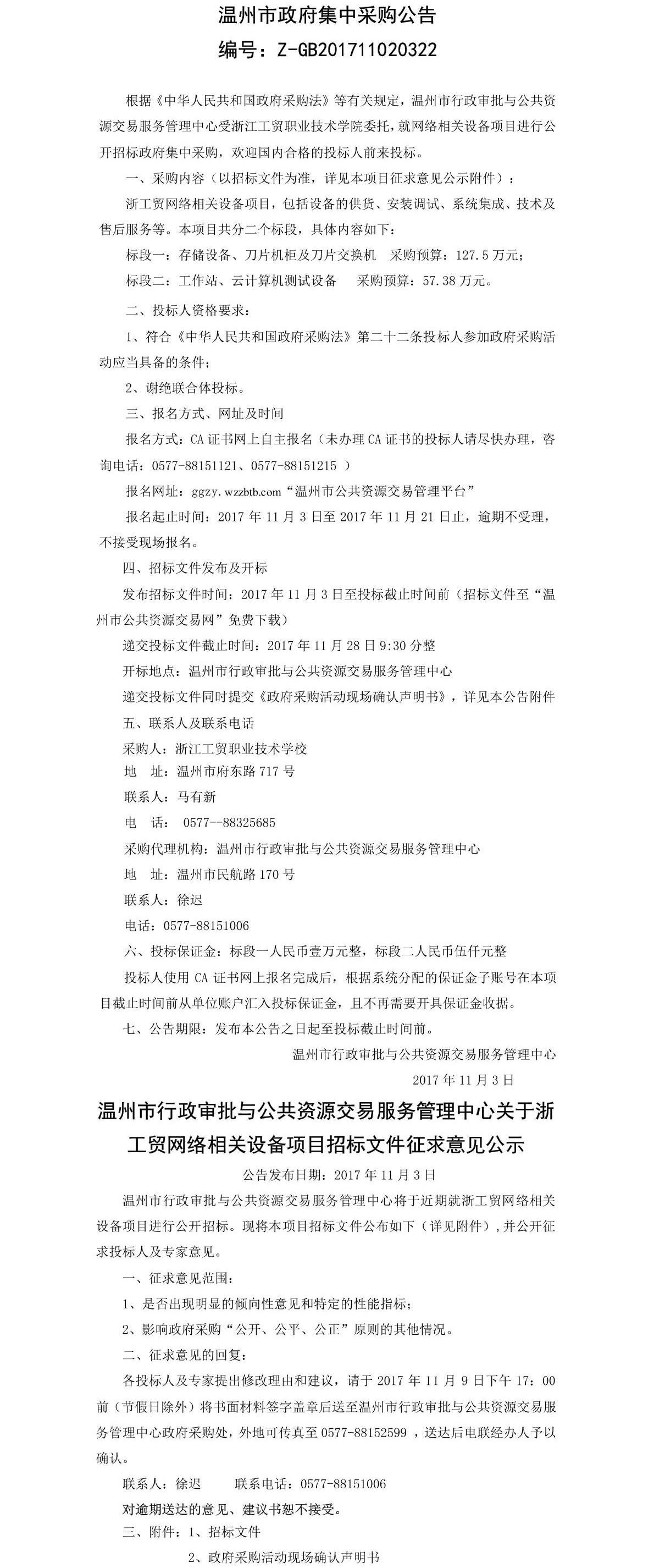 浙江工贸职业技术学院相关网络设备的公开招标公告