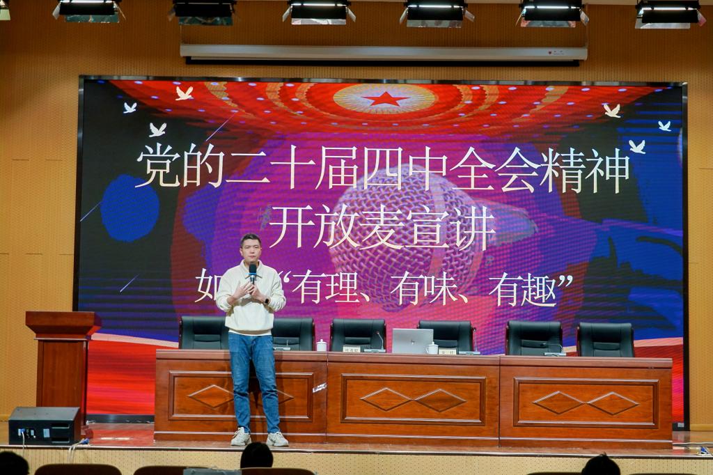 会上,邀请温州市委党校党史党建教研部主任、副教授郑智成作《深入学习贯彻二十届四中全会精神 在新征程上弘扬与践行海霞精神》主题宣讲,郑智成从历史逻辑看海霞精神的生成、从理论逻辑看海霞精神的内涵、从时代逻辑看海霞精神的弘扬三个方面介绍海霞精神,并介绍党的二十届四中全会的重大意义。还邀请“浙里·乡村talk”金牌宣讲员、我校教师叶希聪作《党的二十届四中全会精神开放麦宣讲如何“有理、有味、有趣”》主题宣讲,叶希聪从如何成为党的宣讲员、什么是开放麦式宣讲、会议精神的宣贯重点、如何做好开放麦宣讲四个方面进行宣讲培训。